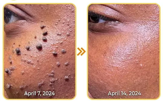 "I’ve had stubborn skin tags on my face for a while and considered laser treatment at a clinic, but it’s so pricey. I found this cream online and saw that it uses bee venom, which is supposed to be effective in removing skin tags. I decided to give it a try, and the results have been incredible! After just two days, the tags started to soften, and by the fifth day, they were falling off on their own. Best of all, there was no pain at any point in the process. This cream is truly an affordable solution that worked wonders for me!" - Caitlin Mason, Melbourne, Australia
